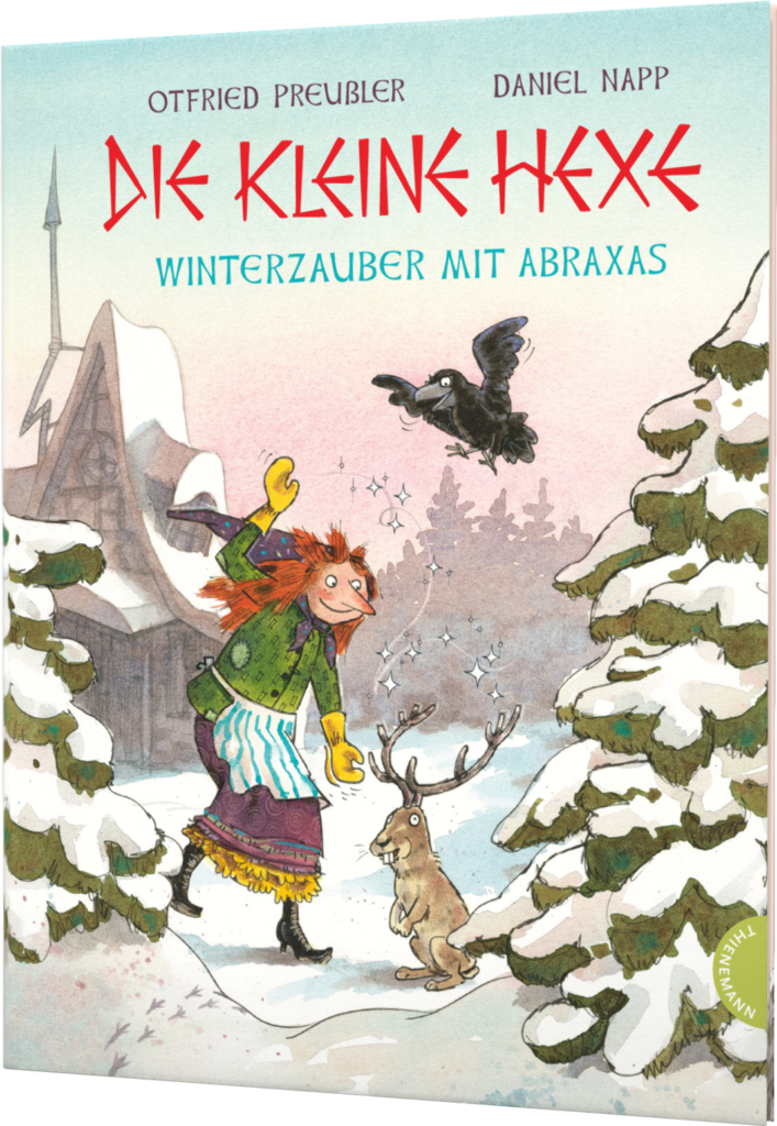 Im verschneiten Städtchen hilft die kleine Hexe dem frierenden Maronimann und feiert mit den Tieren im Wald ein zauberhaftes Winterfest